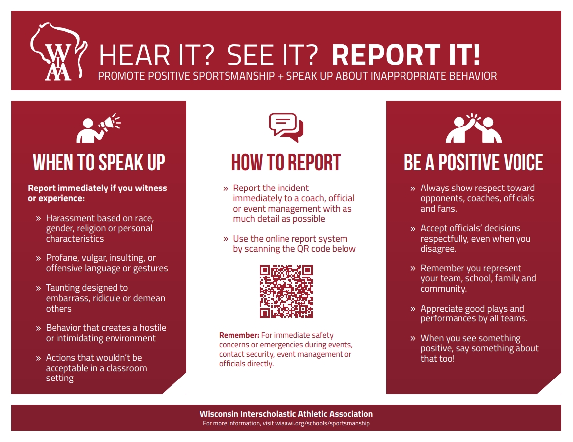 The “Hear It? See It? Report It!” Sportsmanship Initiative is the WIAA’s newest method tackling inappropriate behavior along the sidelines of high school sports.